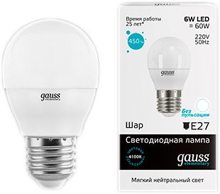 Светодиодная лампочка Gauss Elementary E27 6Вт 4100К [53226]
