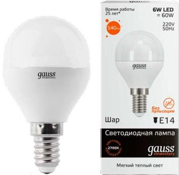 Светодиодная лампочка Gauss Elementary E14 6Вт 4100К [53126]