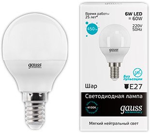 Светодиодная лампочка Gauss E27 6Вт 4100К [102802206]