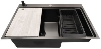 Кухонная мойка Roxen Stage 560250-60B PVD графит (c держателем для ножей, двумя коландерами, разделочной доской и дозатором)